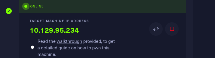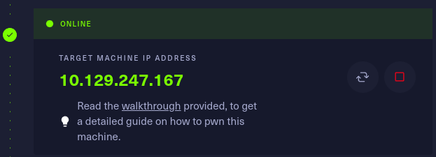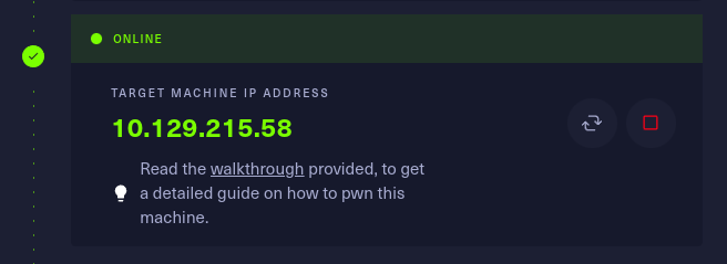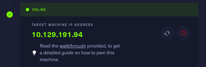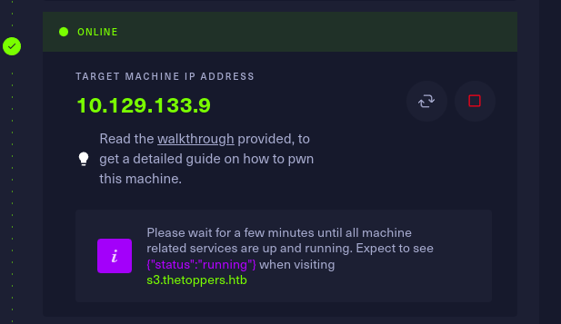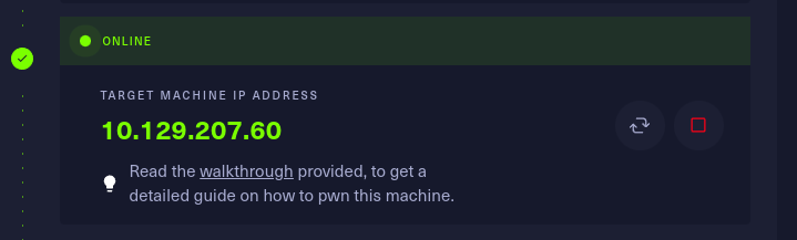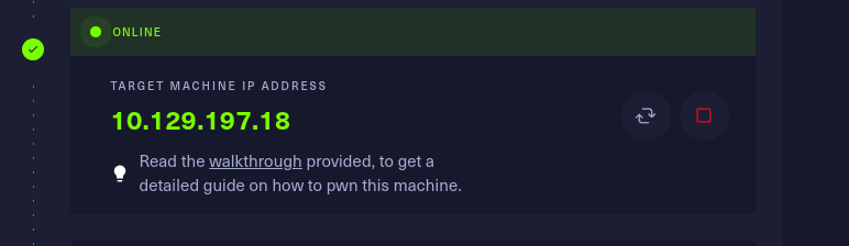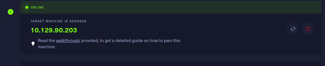this shows that the machine is now active and showing the target Ip address.