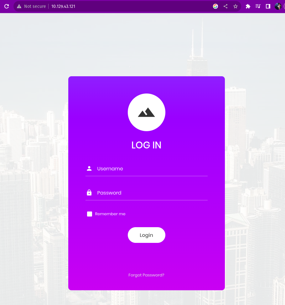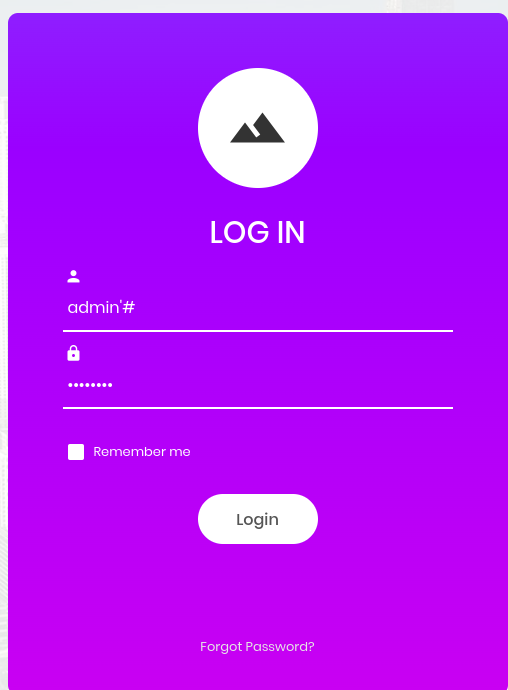 When i searched the target Ip address on internet i was directed to a login page which needed a username and password.I commented the admin username and put a random password.