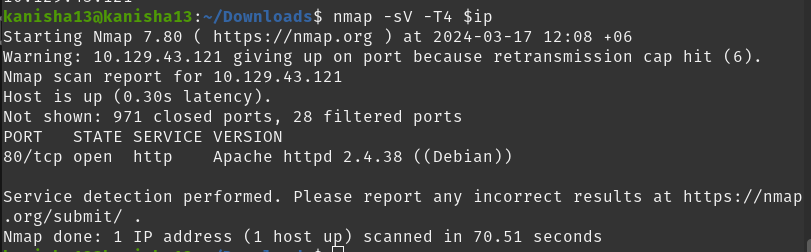 nmap -sV -T4 $ip