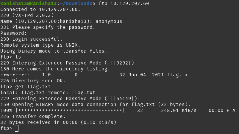 - the ftp code for anonymous login is 230